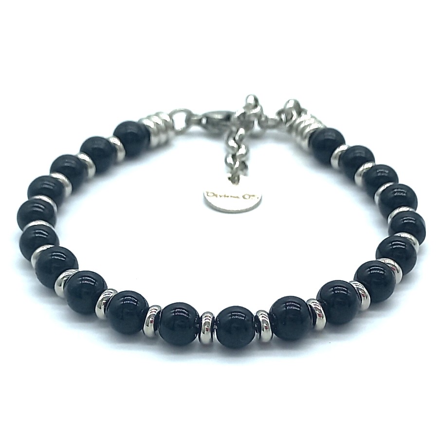 Bracciale Basic Steel & Pietra Dura | Onice Nera Lucida | 6 mm