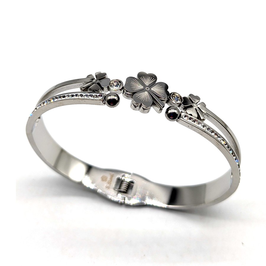 Bracciale Rigid Quadrifogli | Acciaio Inossidabile | Apri & Chiudi a Molla